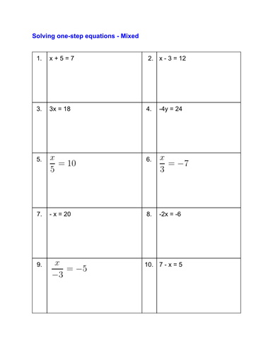 Directions: Find the unknown quantity by solving the following Directions: Find the unknown quantity by solving the following equations. This one step word problems worksheet will produce ten problems per worksheet. Therefore, it is important that you feel comfortable using them.
